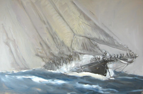 Die Schlagzeilen beiderseits des Atlantiks weden melden, daß der Deutsche Schoner die Führung vor der größeren amerikanischen Yacht übernommen hat.