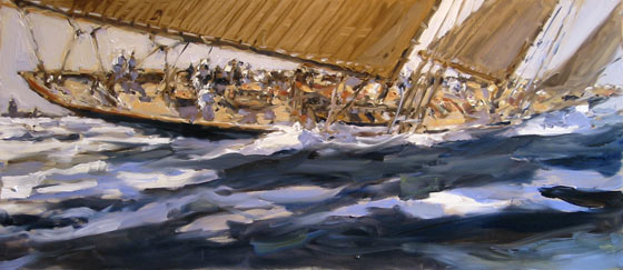 Die Hamburg hat einen schlechten Start, vier Yachten liegen vor ihr, an zweiter Stelle der Dreimastschoner Atlantic unter der Führung eines des besten Yachtskipper seiner Zeit.